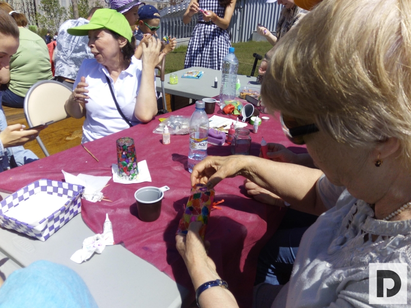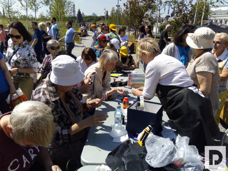 А в это же время, за сценой, на огромной лужайке с видом на кремлевские башни развернулись другие презентации программ проекта «Московское долголетие». Пожилые люди занимались скандинавской ходьбой, йогой, цигуном, рисовали картины, мастерили кожаные браслеты.