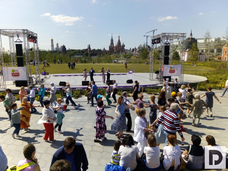 Открыли концертную программу самобытные умелицы клуба-студии «Чудо-мастерица». Они исполнили дефиле и танцы в русских костюмах 19 века. Интересно, что все свои костюмы мастерицы шили по старинным лекалам швей из разных областей старой Руси. Затем мелодичные и тягучие русские напевы сменила зажигательная зумба. Мастер-класс по танцевальной гимнастике «Зумба Голд» накрыл мощнейшей волной позитива весь Большой амфитеатр парка «Зарядья».
