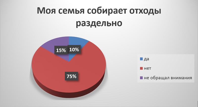 Школьники не поленились – и провели свое собственное расследование. Для этого они задали своим друзьям и близким, одноклассникам и родителям вопросы о том, знают ли они, что мусор необходимо разделять. Так, юнкорам удалось выяснить, что большая часть – 82 процента участников опроса – осведомлены в том, что мусор нужно распределять по различным его видам.