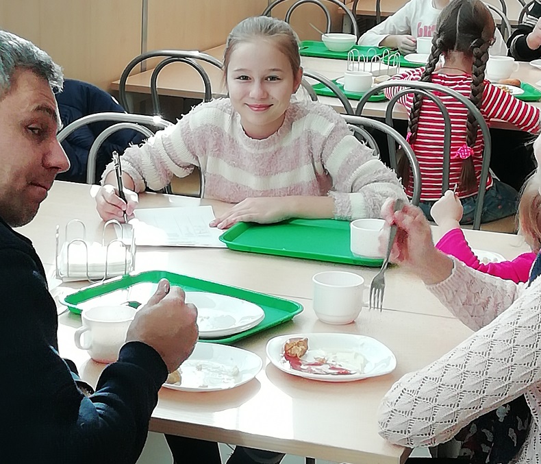 Как рассказал отец третьеклассника Иван Андреевич, он не ожидал, что в школьной столовой можно так вкусно пообедать: «Думал, что еда здесь готовится на поток и никто тщательно не контролирует вкусовые качества. Но оказалось, что бульон в супе – насыщенный, макароны хорошо посолены и ощущается вкус сливочного масла. А куриная котлета — очень нежная».